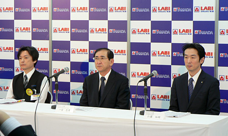 左から、飯塚清LABI新宿東口館店長、一宮忠男社長、仁藤知明取締役兼執行役員常務