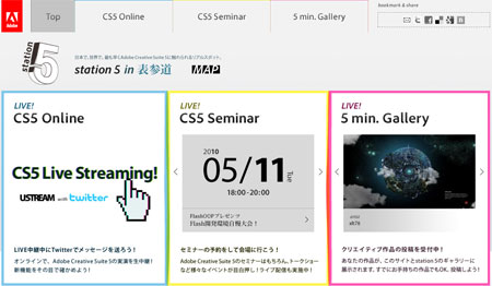 アドビ、統合制作ソフト「CS5」の体験スペース「station 5」をオープン、Web版も