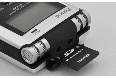「R-05」の最大の利点は、一度の録音で形式の異なる「WAV」と「MP3」二つのファイルを同時に作成できること。この機能があれば、例えばバンド演奏のとき、正規に保存するファイルはWAV、メンバーに音をメールで添付して送付するのはMP3、といったようにシーンによって形式を使い分けることができるのだ。ファイル形式の変換を手動でする必要がなく、管理が手軽になる。もちろん、WAVとMP3、それぞれ個別に録ることもできる。各形式の最大のサンプリング周波数は、WAVが96kHz/24bit、MP3は48kHz/320kbps。