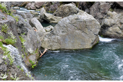 前者は、あまりに本体を水に近づけすぎて、水しぶきがマイクにかかってしまい、その音がそのまま入っている。後者は、小川のようなせせらぎが頭に浮かぶ、とてもさわやかな音が収録できた。いずれも流れのすぐそばで録音したので、背景にかすかに聴こえる本流の音がそれほど気にならない。