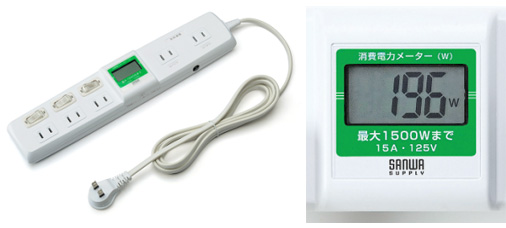 サンワサプライ、使用電力がわかるワットチェッカー付きの電源タップ