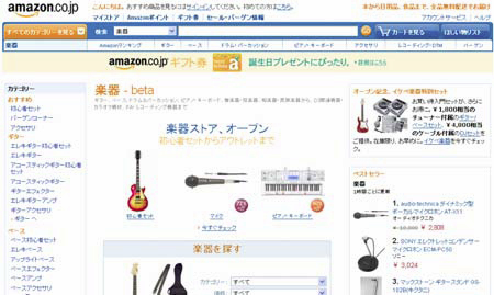 オンラインショップ「Amazon.co.jp」を運営するアマゾンジャパンは、4月27日、新たに「楽器」ストア(http://www.amazon.co.jp/gakki/)をオープンした。