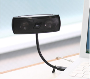 PCのUSBポートから音源と電源を直接取ることができる。アーム部分は可動式で、スピーカーの向きを自由に変えられる。本体サイズは幅135×奥行き40×高さ216mm。
