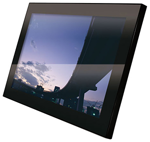 解像度800×480ピクセルの10.1型ワイド液晶を搭載。静止画だけでなく、動画や音楽ファイルも再生できる。横置き/縦置きを自動認識するオートローテンション機能、時計・カレンダー表示機能を備える。