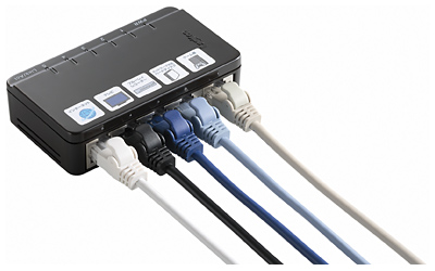 デジタル家電をまとめて接続、ロジテックのLANケーブル付属スイッチングハブ