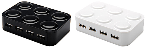カードリーダーとUSBハブは、ともにおもちゃのブロックのように積み重ねて使うことができる。カラーはブラック、ブルー、レッド、ホワイト・イエローの5色で展開する。