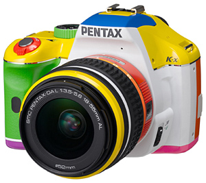 「PENTAX K-x」をベースに、タワーレコードが販売している「夏フェス応援グッズ」のテーマの「虹」に合わせて、レッド、オレンジ、イエロー、グリーン、ブルー、パープル、ピンクのパーツを組み合わせたレインボーカラーの特別限定モデル。