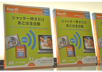 「Eye-Fiカード」は、デジタルカメラで撮影した写真や動画をワイヤレスでPCに転送できる無線LAN内蔵SDカード。写真・動画共有サイトやSNS、ブログに、手軽にファイルをアップロードできる。