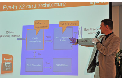 Eye-Fi Inc.のジェフ・ホロブ社長兼CEOは「Eye-Fiカードなら、位置情報の添付など、デジタルカメラで撮影した写真を価値あるものにできる」とアピールした。