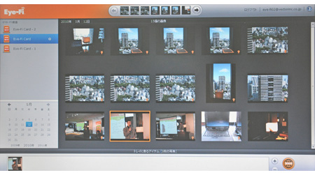 「Eye-Fi Center」は、Webブラウザ上で動作する従来モデル向けの「Eye-Fi Manager」に代わる管理ソフト。本体から取り込んだ写真・動画はサムネイルで表示する。カレンダー機能を備え、写真や動画のファイルを探しやすい。なお、これまでのユーザーに対しては、無償でダウンロード提供する。