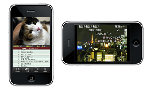 「ニコニコ生放送iPhoneアプリ」の放送画面イメージ(左)と視聴画面イメージ(右)