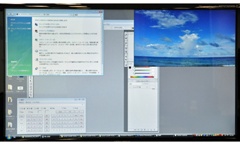 小画面を表示する「ピクチャーインピクチャー(PinP)」機能で、テレビを見ながらインターネットをする、といった「ながら見」ができる。従来モデルはアナログとデジタルの出力だったが、新製品はデジタル2画面の表示ができる。小画面のサイズ変更や、表示位置を画面の四隅から選ぶことができる。なお、HDMI端子同士とD5端子×D-sub15ピンの組み合わせは、2画面にできない。