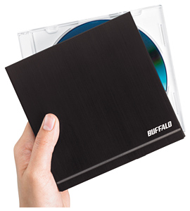 バッファロー、CDケースサイズのUSBバスパワー対応ポータブルDVDドライブ