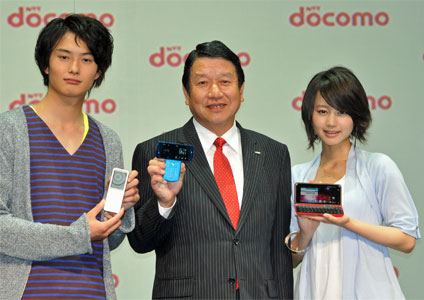 会場には、俳優の掘北真希さんと岡田将生さんが登場し、ドコモの山田隆持社長とともに夏モデルをアピールした。