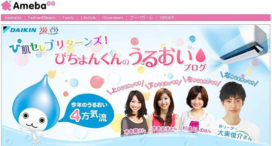 「ぴ肌セレブ」メンバーの読者モデル3名は、ダイキン工業製のルームエアコン「うるるとさらら」を実生活で1年間使用し、ブログ上で「空気と美肌の関連」について体験者の声を発信する。