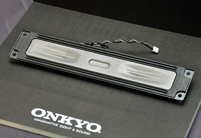 厚さが10mm以下という独自開発の高音質スピーカーを、本体前面に備える。新構造の振動板や新開発の薄型磁気回路などを採用することで、超薄型と小型化を実現した。