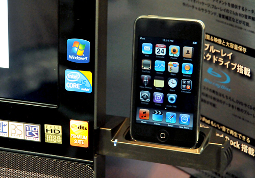 オーディオ機能ではスライド式のiPod用Dockも搭載した。PCの電源を入れなくてもiPodの音楽再生や充電ができる。