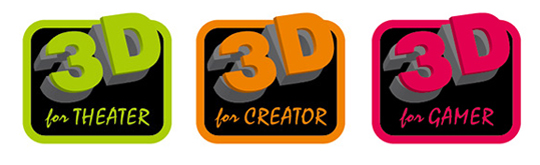 目的とする3Dコンテンツに合った製品を選択できるよう、「3D for THEATER」「3D for CREATOR」「3D for GAMER」の3種類のロゴを用意。それぞれの要件を満たしたパソコンにロゴマークを表記し、性能をわかりやすく提示する。