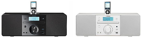 外部入力端子の搭載によって、iPod以外の携帯オーディオも接続できる。実用最大出力は3W+3W。本体サイズは幅400×高さ141×奥行き211mm、重さ3.3kg。カラーはブラックとホワイト。