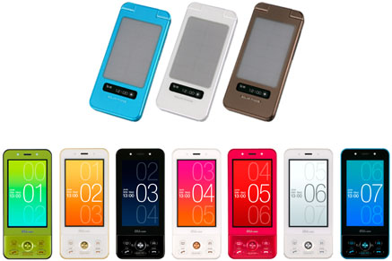 シャープ製の「SOLAR PHONE SH007」は、10分間のソーラー充電で約2分の通話と約3時間の待受ができるなど、発電効率を向上。地磁気センサ、気圧センサ、GPSを利用し、方角とその方角に見える星座や惑星を表示するアプリケーションなどを備える。カラーはスプラッシュブルー、クリーンホワイト、サンセットブラウンの3色を用意。