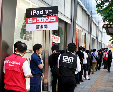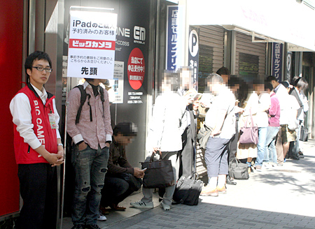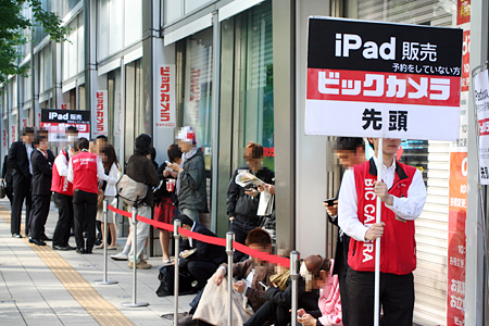 家電量販店のビックカメラは、5月28日、アップルの「iPad」の販売を全国23店舗で開始した。当日、旗艦店の有楽町店では、いち早く製品を手に入れようと、予約者や当日購入者が早朝から列を作った。