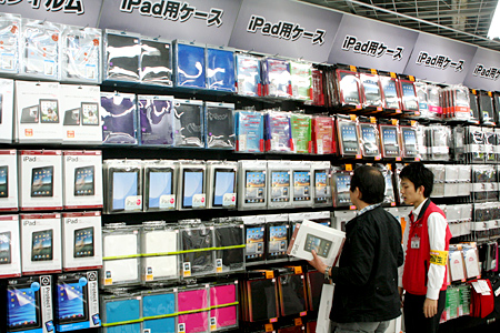 ビックカメラではiPadを「夏の目玉商品」(榎木省吾有楽町本店5F Windowsコーナー主任)と位置付けている。購入者に周辺アクセサリや通信サービスを提案するなど、セット販売に力を入れていく方針。
