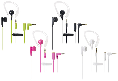 「ATH-CP200」は耳にしっかりと装着できるクリップが付属するインナーイヤー型イヤホン。透明なクリップは付けていても目立たず、取り外しが可能。カラーは、ブラック×グリーン、ブラック、ピンク、ホワイト。ケーブルはU字型で、長さは60cm。実勢価格は2000円前後の見込み。