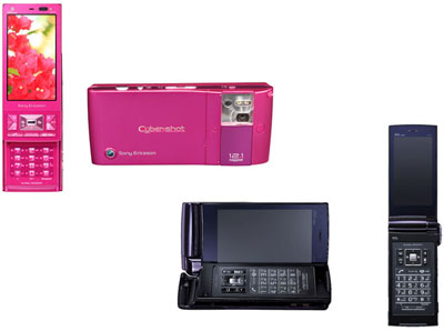 Cyber-shotケータイ S003(フラッシュピンク/上)とBRAVIA Phone S004(オニキスブラック)