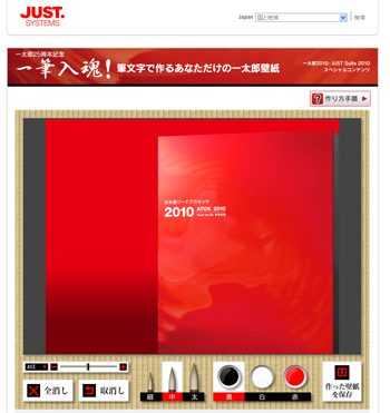 ジャストシステムは、6月2日、日本語ワープロソフト「一太郎」の発売25周年を記念し、「一太郎2010」のパッケージの背景に、筆文字で「一太郎」と描いてオリジナルの壁紙を作ることができる「一筆入魂! 筆文字で作るあなただけの一太郎壁紙」を「一太郎25周年記念サイト」で公開した。