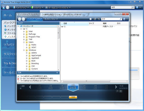 戻したい時点を選択すれば、システム、ファイル、フォルダを過去の状態に復元できる