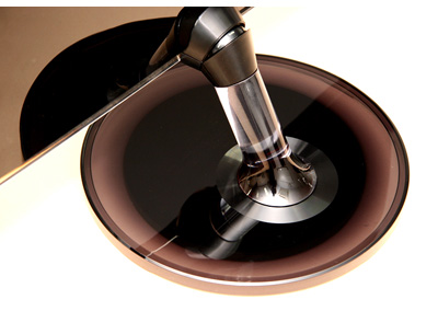 液晶画面を囲むベゼル(縁)は透明なパネルに覆われ、これが透明感溢れるデザインを決定づけるポイントとなっている。さらに、デザイン上のアクセントになっているのがスタンドだ。透明な樹脂を使用しており、見る角度と背景によっては、あたかも液晶画面が宙に浮いているかのような錯覚を覚えるほど。