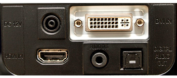 画面下部の電源のスイッチは、触れるだけでオン/オフができるセンサ式。電源を入れると、液晶表示に影響が及ばない程度にうっすら淡い光が灯るのが美しい。そのほかのスイッチやコネクタ類は、デザインを損なうことのないよう、すべて背面に配置している。入力端子はHDCP対応のDVI-I端子、HDMI端子を装備する。