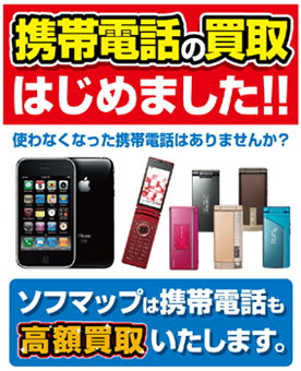 ソフマップは、全国27店舗と直販サイト「ソフマップ・ドットコム」で、携帯電話の買い取りサービスを6月9日に開始する。
