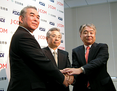 住友商事は、1995年のJ:COM設立以来の主要株主。KDDIは、10年2月に主要株主となった。J:COMの森泉社長は、「住友商事との関係を一層深化させていくとともに、通信会社の雄であるKDDIとビジネスパートナーとして提携することで、企業価値向上を目指す」と語った。