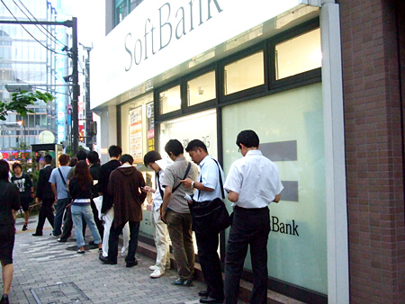 予約受付を開始する6月15日17時の30分前から行列ができた「ソフトバンク池袋東口」の様子