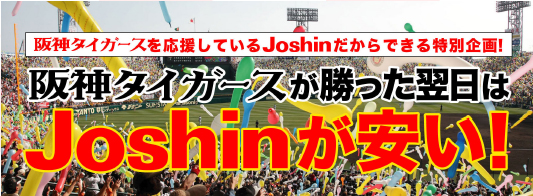 上新電機は、Joshinポイントカード会員に対して、プロ野球の阪神タイガースが勝利した翌日は店内のほとんどの商品を特別価格で提供する「阪神タイガースが勝った翌日は、Joshinが安い!」セールを開始した。実施期間は2010年6月19日から7月16日まで。