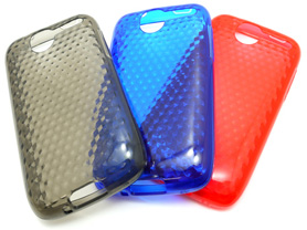 「HTC Desire SoftBank X06HT」用の「RT-HX06C4」は、ホコリや汚れがつきにくく、しなやかな手触りの熱可塑性ポリウレタン樹脂素材のソフトケース。カラーはブラック、ブルー、レッドの3色。光沢仕様の本体表面保護フィルムが付属する。直販サイトでの価格は1280円。
