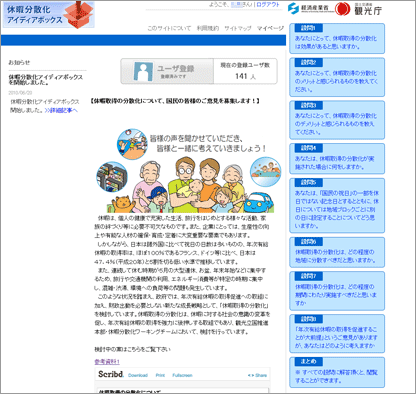「休暇分散化に関するアイディアボックス」のトップページ