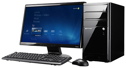 パーソナルパワーモデルの「Lm-i722X2-D3B-P24W」は、地デジを快適に楽しめることに加え、デスクトップPCにふさわしい性能と拡張性をもつ。画像処理など負荷の高いタスクにも対応する。マイルームモデルと同様、3波対応地上デジタルテレビチューナーを装備する。液晶ディスプレイはフルHD対応の23.6型ワイド「iiyama PLE2409HDS-B1」。