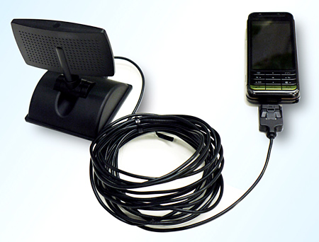 水平・垂直に動くフラットアンテナで、電波を効率よく受信する。窓際などに置いたアンテナ本体から、細くて柔らかい約5mのロングケーブルで部屋の奥や建物の影など電波が届きにくい環境へ電波を引き込み、通話・メールやウェブの送受信状態を向上させる。