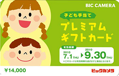 ビックカメラ、子ども手当てで1000円おトクなプレミアムギフトカード