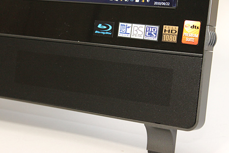 液晶下部に搭載しているスピーカーは5W×2で、直径10cmのウーファー振動板相当の振動板面積をもつ専用スリムスピーカーユニットを採用。厚みのあるサウンドが再生できる。ツインマグネットを使い、強い駆動力を得ながらも薄さ10mmにまとめているのがポイントだ。