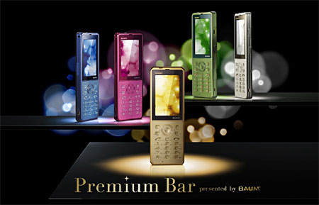 ウィルコムとウィルコム沖縄は、20代から30代の男女をメインターゲットに、華やかなメタリックカラーを採用した京セラ製の電話機「Premium Bar presented by BAUM(WX341K P)」を7月15日に発売する。