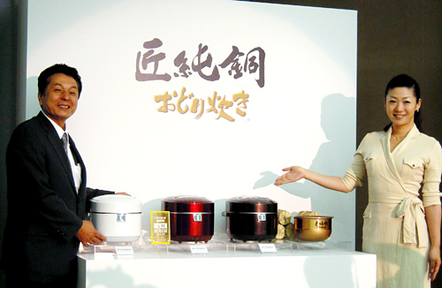 「匠純銅 おどり炊き」を発表する三洋コンシューマエレクトロニクスの和田隆弘社長