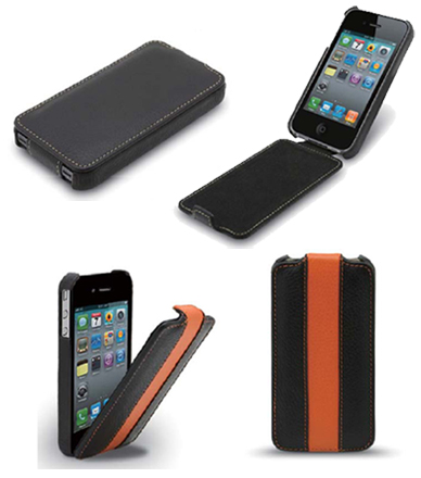 高級感溢れる本革素材を採用。iPhone 4のデザイン性、機能性を損なうことなくキズや汚れから保護する。液晶画面をカバーする部分は開閉でき、ケースを装着したままで各種操作を行うことができる。