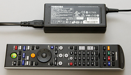 地デジチューナーは1基のみ。mini B-CASカードはバッテリパックを取り外した部分に装着する。視聴ソフトには「Qosmio AV Center」を利用する。起動は10秒以下で、やや遅いがストレスになるほどでもない。チャンネルの切り替えは2-3秒だ。リモコンで操作する時には大きな文字で見やすいインターフェースになり、マウスでの操作時は一覧性が向上するようになっている。