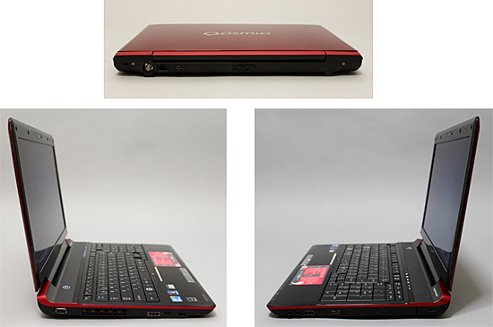 ボディはシャイニーレッド。フィルムで醸し出している深みと艶やかさには感嘆する。キーボード面やサイドのブラック、ヒンジ部分の微妙なカーブやサイドに入るシャイニーレッドのラインなど、細部はよく作り込まれている。
