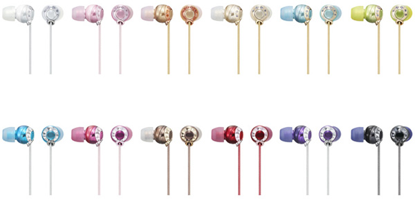 「Jienne CHIC(MDR-EX80LP)」は、ハウジング部分にスワロフスキー製のジルコニアを散りばめたシャイニーシルバー、ベビーピンク、ピンクゴールド、クラシックゴールド、アクアブルー、シトラスグリーンの6色と、同じくハウジング部分にリング状のクリスタルカットデザインを施したセルリアンブルー、ロゼピンク、マロンブラウン、スカーレットレッド、ダークバイオレット、オニキスブラックの6色をラインアップする。再生周波数帯域は5-23000Hz。