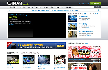 Ustreamのトップページ