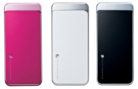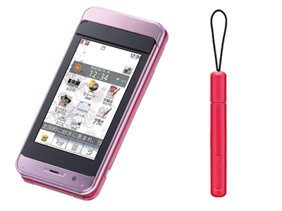 「IPX5/IPX7」の防水性能をもつラウンドフォルムボディに、約3.1インチのタッチパネル液晶を搭載。付属のタッチペンでダイアリーやイラスト、メモなどを手書きすることができる。ディスプレイ部を回転させてビューアスタイルにすると、ワンタッチで機能を起動できるタッチメニューが作動。タッチペンでスムーズに操作できる。